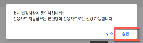 신용카드 자동납부는 본인 명의의 카드만 가능한 팝업 메시지와 같이 본인 카드가 맞다면 <승인> 버튼을 선택하시면 됩니다.