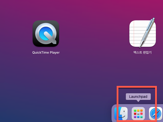모니터 하단에 있는 독(Dock)에 있는 Launchpad 의 아이콘을 먼저 찾아 선택을 합니다
