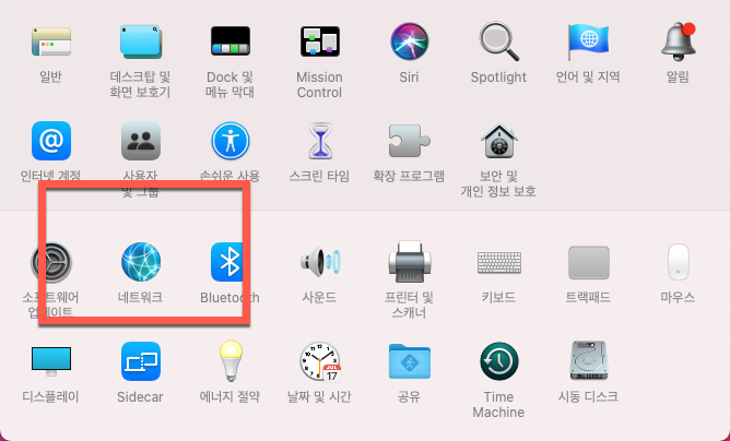 모니터 화면 아래 영역 독(Dock)에 있는 Launchpad 속에 있는 목록 중 <시스템 환경설정>을 찾아 클릭 선택으로 부터 시작합니다