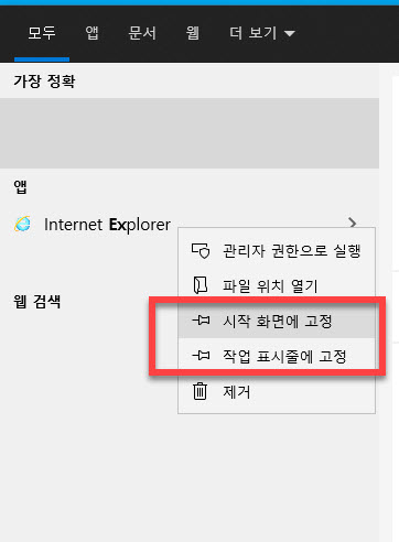 Windows10 에서 Internet Explorer 찾기