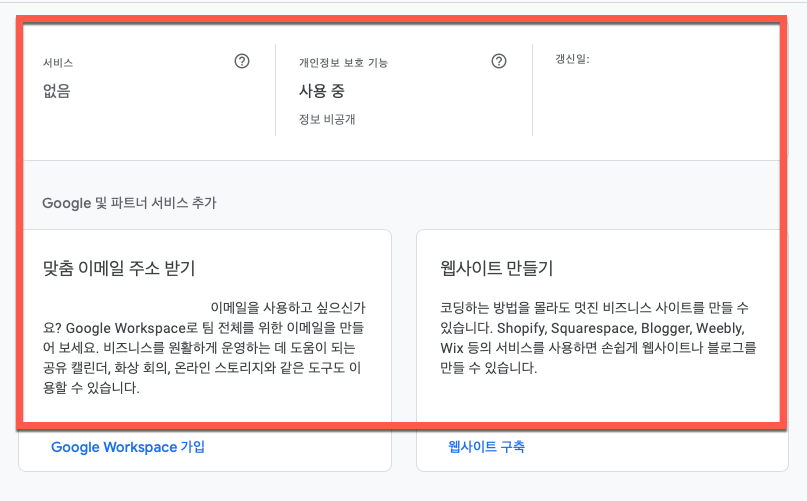 구글 지메일 계정으로 로그인하셨다면 구글 검색엔진에서 <구글 도메인> 키워드로 검색하면 처음 만날 수 있는 홈페이지입니다