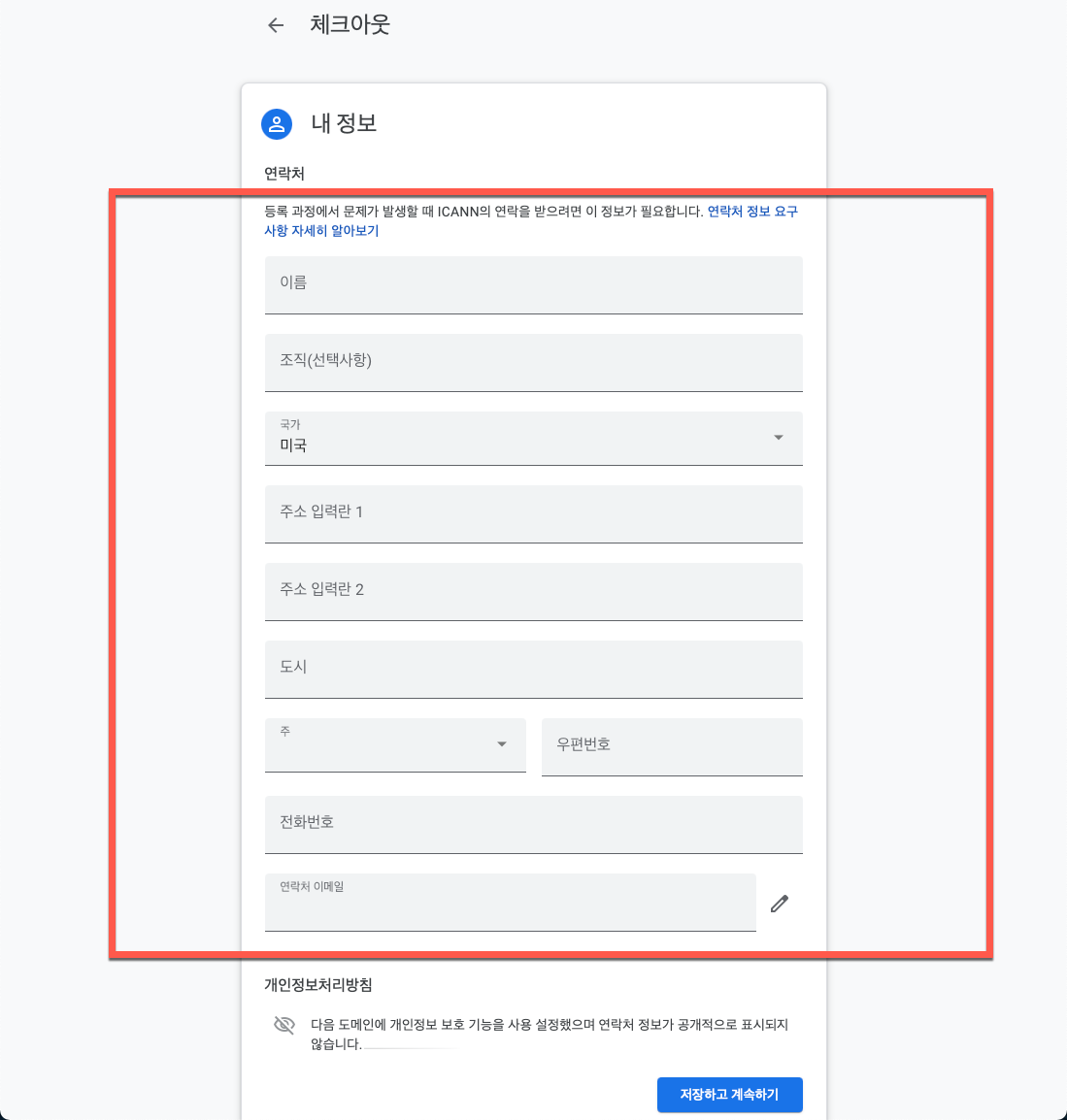 다음 단계에서는 이름과 주소 정보를 입력해 주시면 됩니다