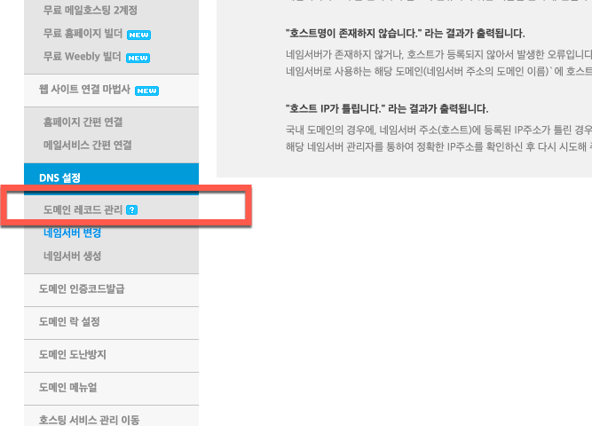 각각의 도메인 구매처 마다 메뉴와 기능에서는 조금씩 차이가 있겠지만,