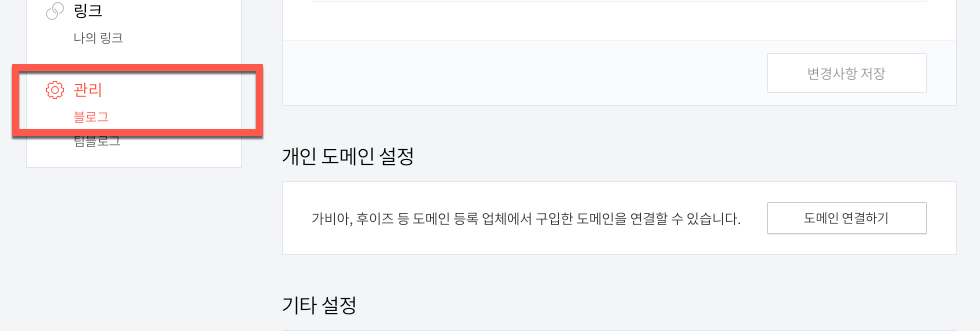 새로운 도메인으로 연결하려는 티스토리 블로그 어드민(admin) 관리페이지로 로그인을 하셨다면 왼쪽 메뉴 목록 중 가장 아래에 있는 관리 영역에 있는 <블로그> 를 클릭하여 표시되는 설정 중에서 <개인 도메인 설정> 에 있는 <도메인 연결하기> 단추를 클릭하여 작업을 진행해주시면 됩니다