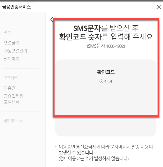 이후 등록한 휴대폰 문자메시지함에 도착한 문자에 <확인코드 숫자>를 답문을 보내듯이 숫자를 제한된 시간 이내에 입력하여 전송을 해주시면 됩니다