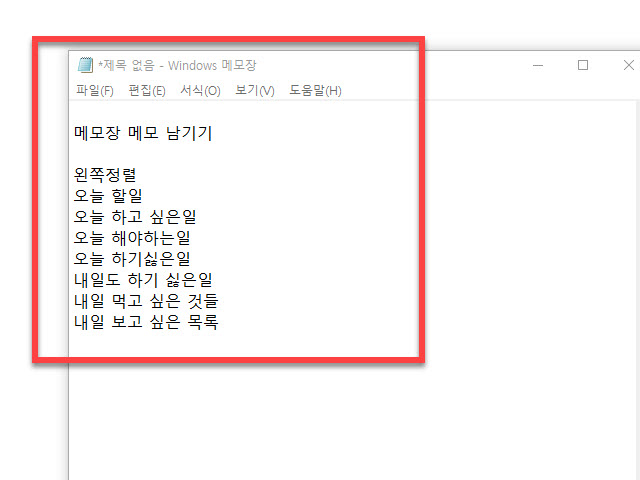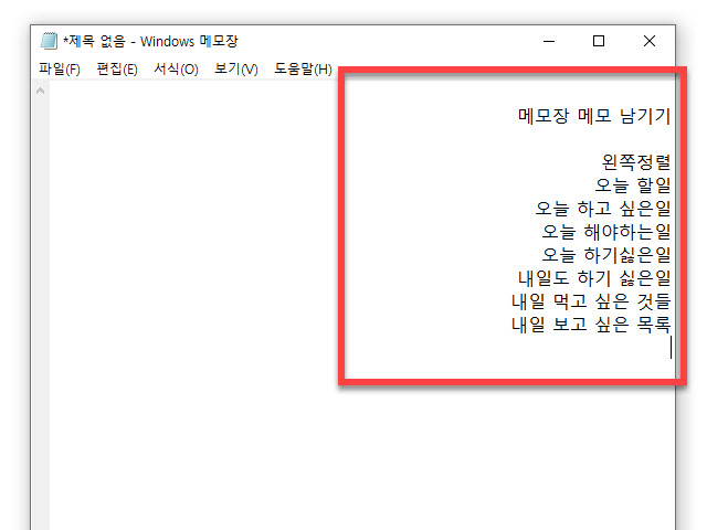 메모장 작성 자료의 오른쪽 정렬 해제하는 방법