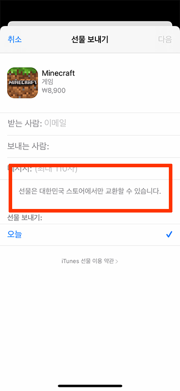 어플을 선물하기 전에 살펴야 하는 사항 중에 하나는 어플을 받을 분과 보내는 사람이 동일한 국가의 앱스토어 계정을 가지고 있어야 합니다
