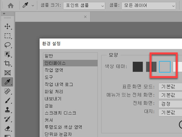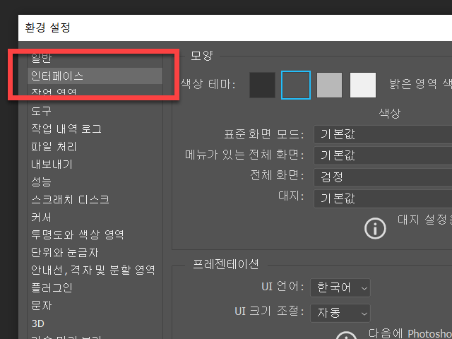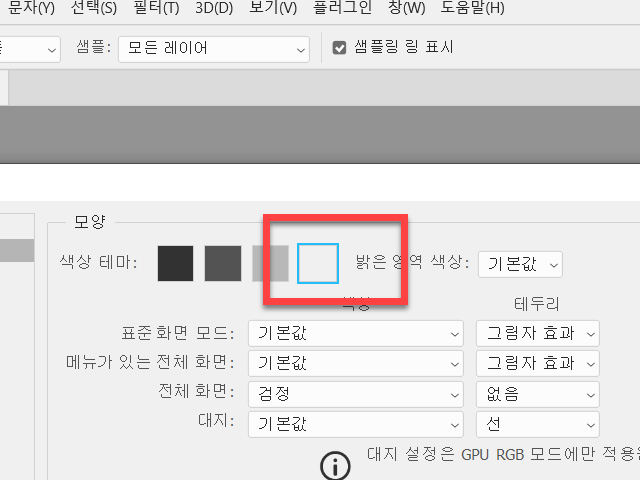 포토샵 인터페이스 배경화면 색상 테마 변경하는 방법