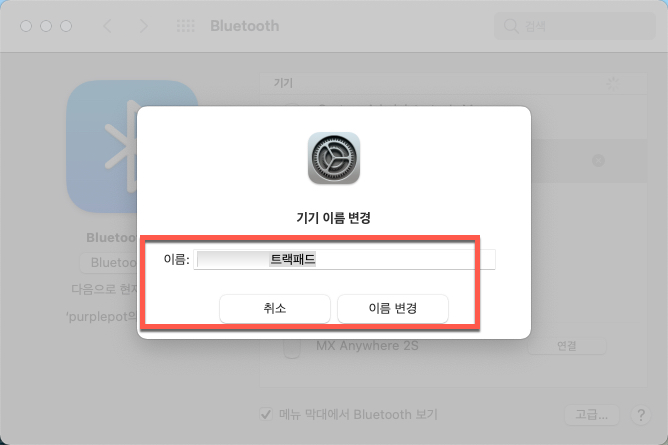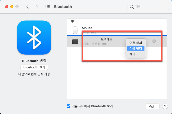 애플 매직 트랙패드2 블루투스 연결방법 및 연결장치 이름 변경하기