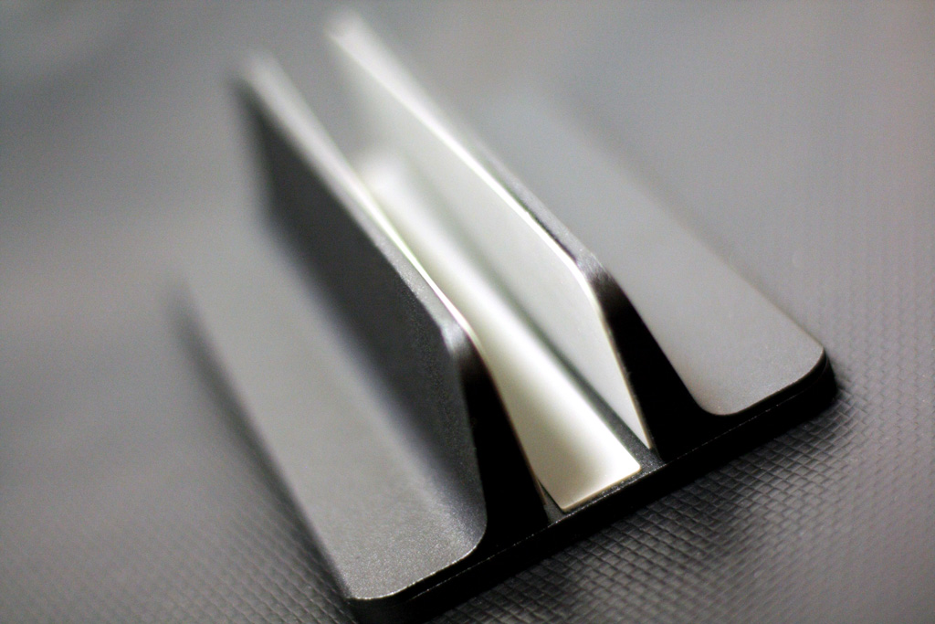 거치대 가운데 영역과 맥미니를 세로로 세워 고정해 줄 좌우 측면 부분에는 알루미늄이 아닌 소재를 부착되어 제품을 설치 & 결합하여 사용하는 동안에 생기는 스크래치를 줄일 수 있도록 만들어져 있었습니다
