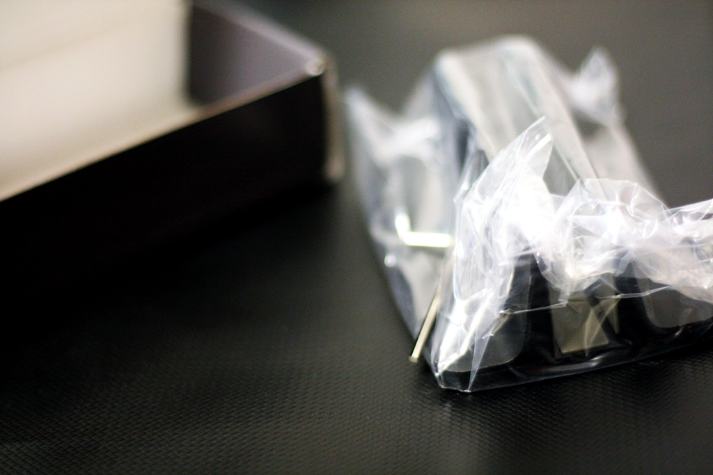 심플한 포장 박스를 오픈하면 수직 스탠드 1개와 좌우 폭을 결정 후 고정할 때 필요한 부속품이 함께 비닐에 담겨져 있습니다