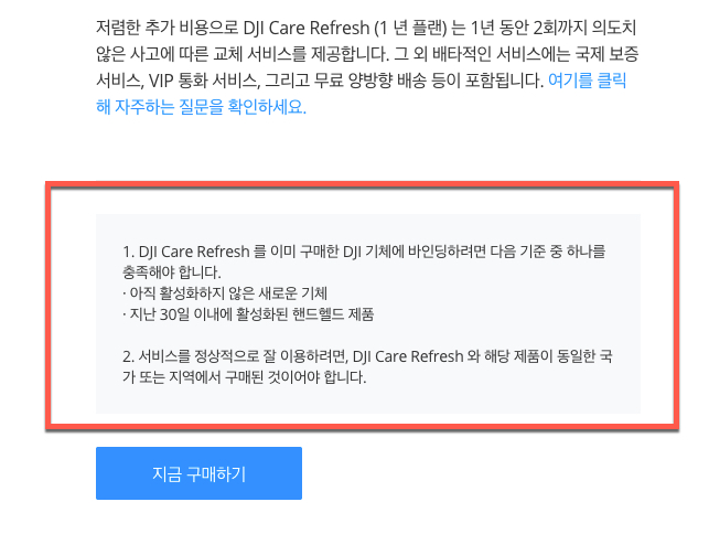 이와 같이 DJI 제품을 구입을 준비하는 분 들이라면 DJI Care Refresh 이라는 서비스로 제품 파손 등을 대비하는 준비도 함께 구입하시는 게 좋습니다