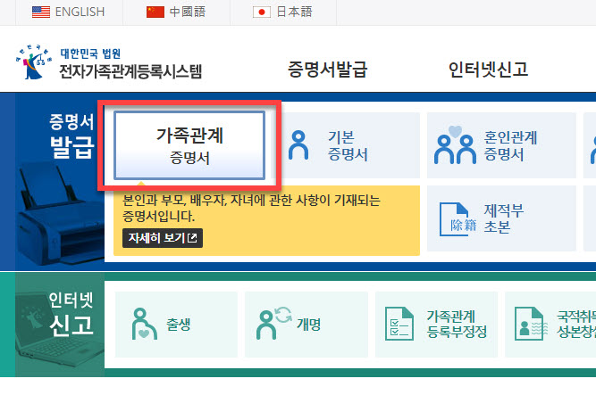 가족관계증명서를 인터넷으로 발급 받는 과정 둘러보기