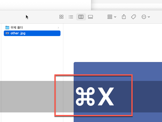 그중에서도 문서를 작성하면서, 사진 그림 이미지를 편집하면서 만들어진 문서 파일을 다른 폴더 위치로 옮겨야 하는 작업을 윈도우에서 사용하듯이 <Ctrl + X> 처럼 <Ctrl> 키에 해당하는 맥 OS의 <Command> 키와 함께 사용하여 <Command + X> 키 조합을 시도하게 됩니다