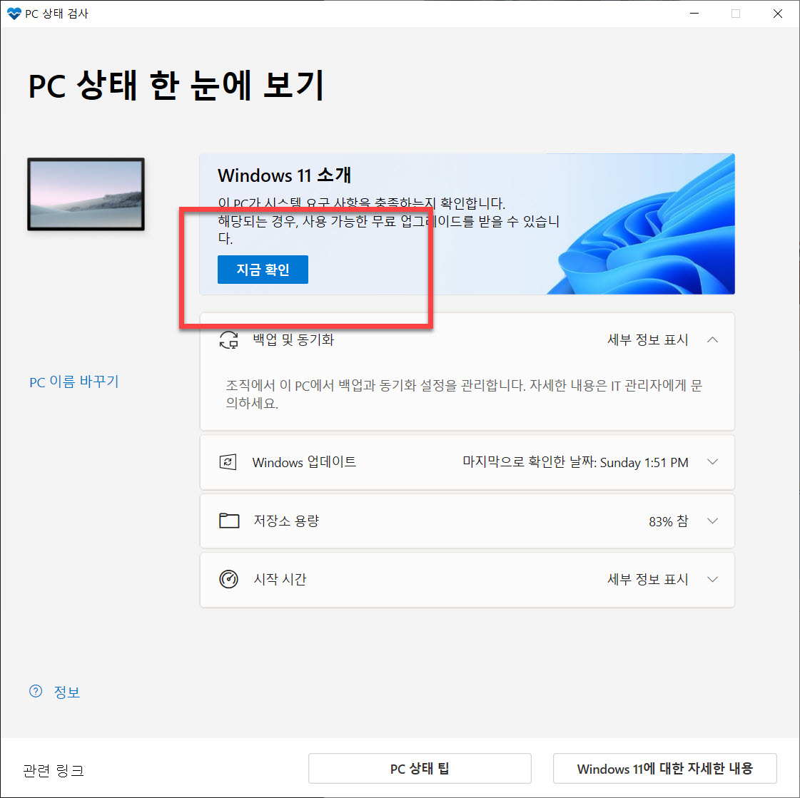 Windows 11 설치가능 PC 상태검사 & 호환성 확인하기