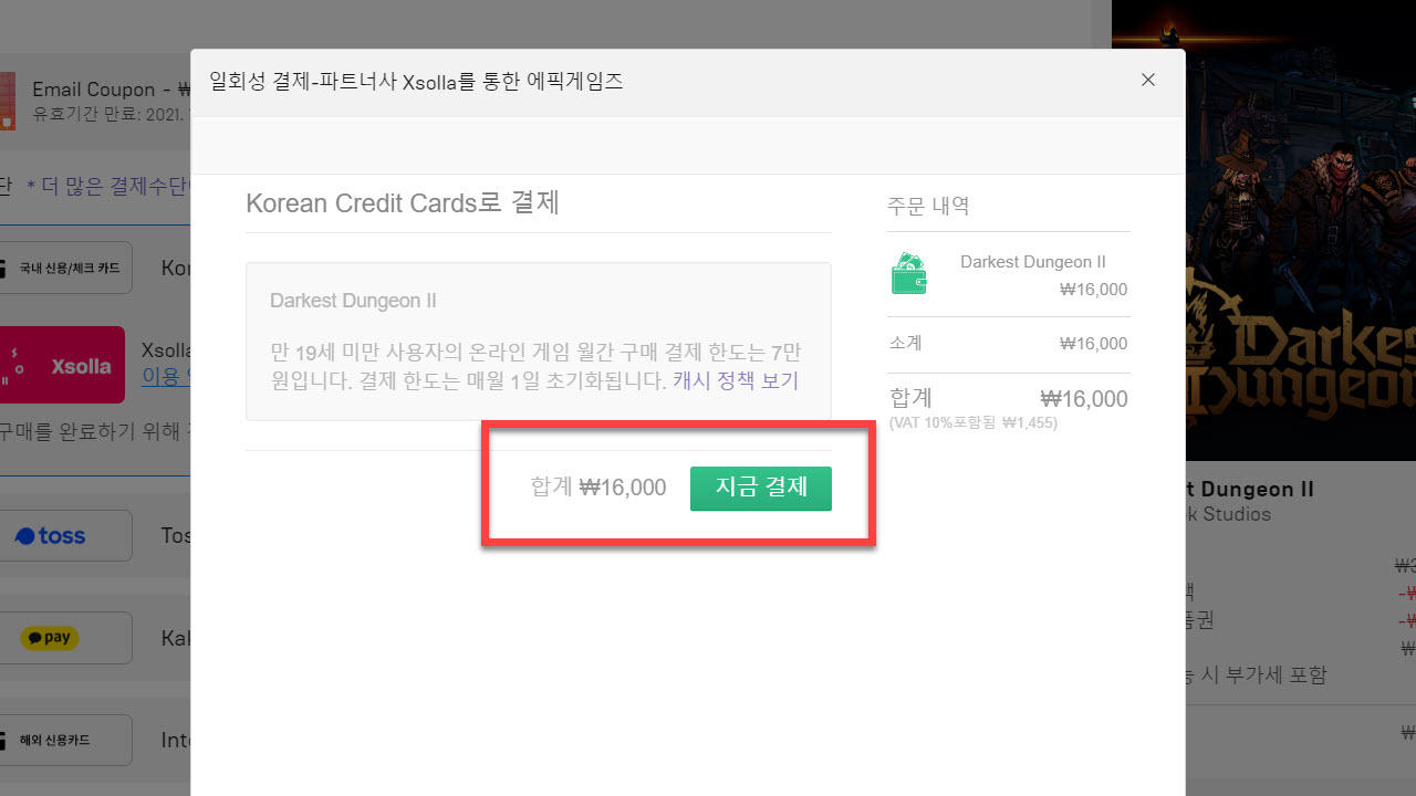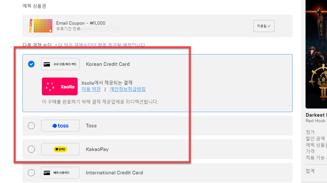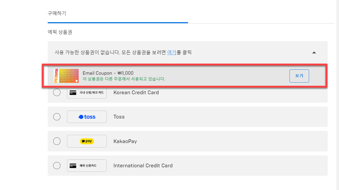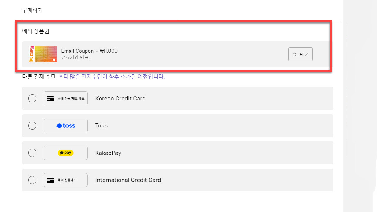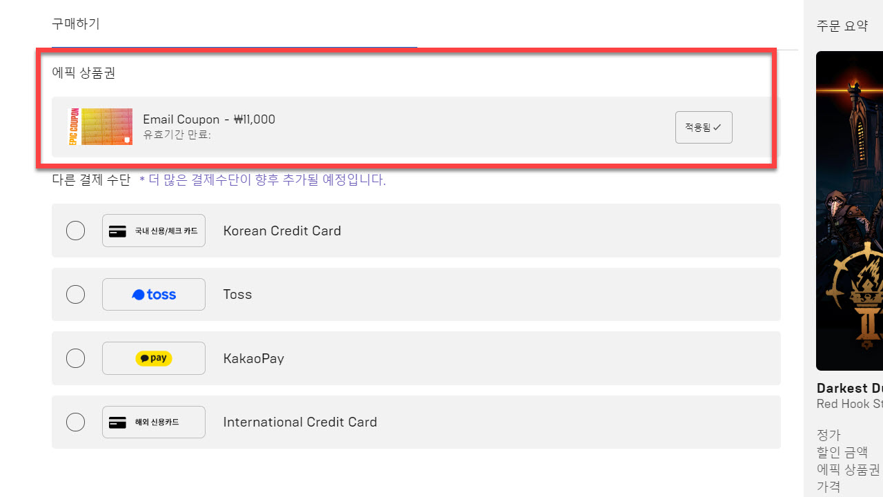 Epic 게임즈 스토어 쿠폰 사용 및 결제(신용카드,토스) 구매하는 방법
