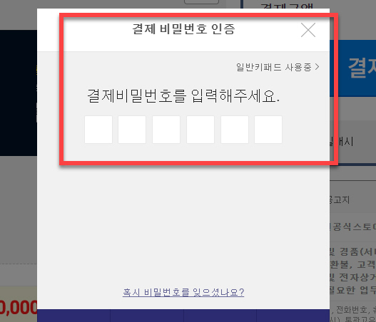 <결제 비밀번호 인증> 단계에서는 Gmarket에서 간편 결제 진행 시 확인단계에서 다시 만나게 되는 팝업 창으로 총 6자리의 숫자를 입력과 함께 추후에 계속해서 사용해야 하기 때문에 잊어버리시면 안 됩니다