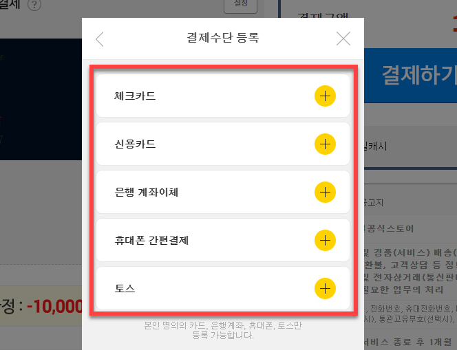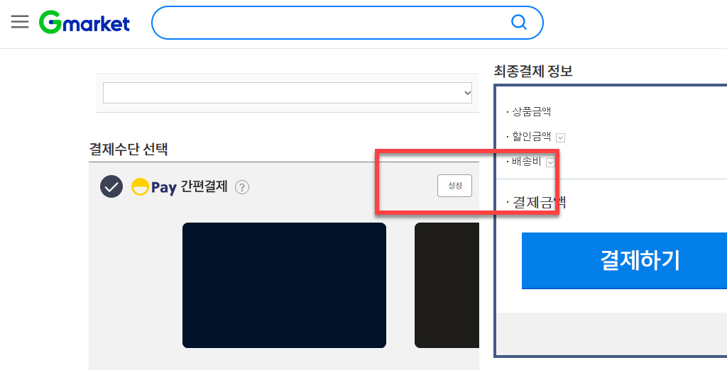 지마켓 결제수단 설정 과정 따라가기