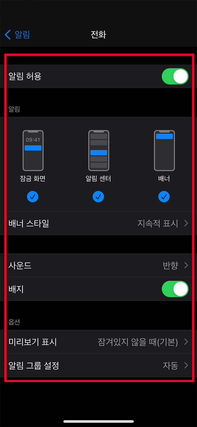 아이폰 잠김화면,상단 배너 등의 푸시 알림 표시 설정 변경&비활성화 해제 방법