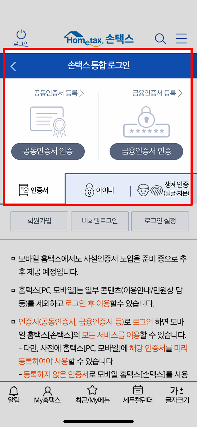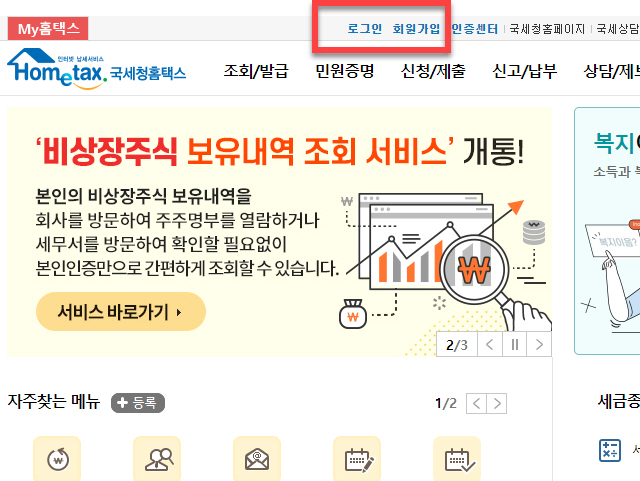 국세청 홈텍스 공인인증서 로그인 등록방법 - Home tax
