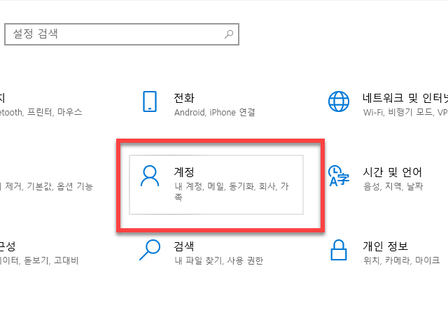 이런 경우에는 윈도우 제어판에 있는 <계정> 항목으로 이동을 하시면 됩니다