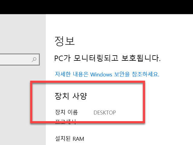 컴퓨터 본체를 열어 보지 않아도, 특정 유틸리티 응용 프로그램 앱을 설치하지 않아도 컴퓨터의 CPU와 램 용량을 확인할 때도 방문하는 페이지의 가장 윗부분의 <장치 사양> 에 포함되어 있는 <장치 이름> 에 표시되어 있는 이름을 확인 & 기억해 두셔야 합니다