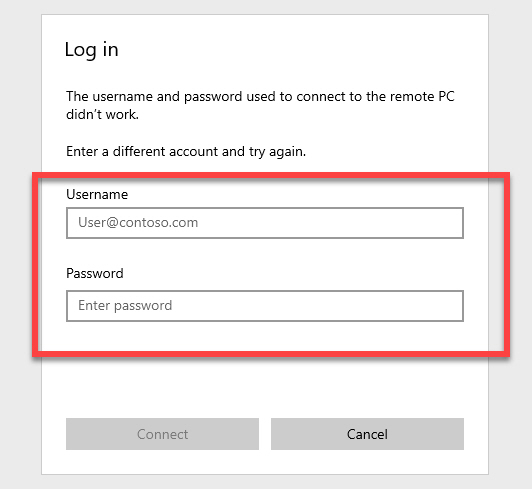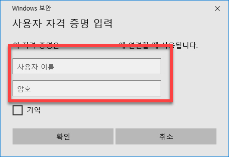 다음 화면에서는 <Username> 과 <Password> 입력 단계에서는 접속할 컴퓨터에서 로그인에서 사용하는 계정의 정보를 동일하게 입력해 주시면 됩니다