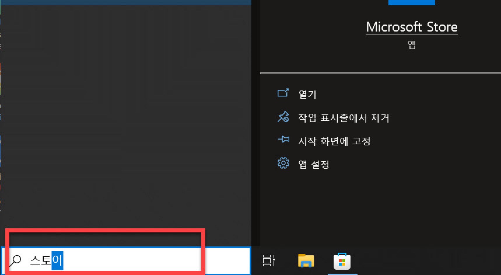 원격 접속 프로그램을 설치하기 위해서는 1번째로 윈도우 작업표시줄 검색창에서 <스토어> 검색어를 키보드로 입력하여 OS에 설치되어 있는 <Microsoft Store> 앱을 찾아 실행을 합니다