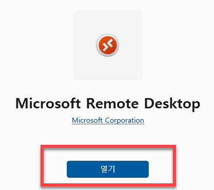 “열기” 버튼을 클릭하여 원격 연결 앱을 실행합니다