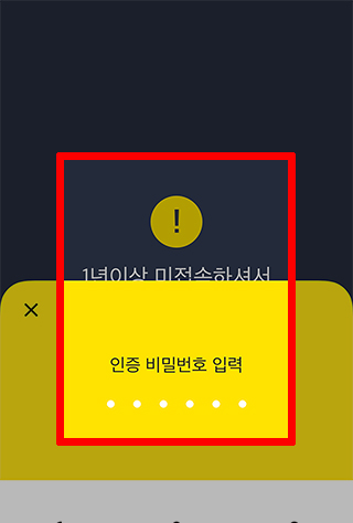 장기 미접속 사용하지 않았던 카뱅 추가 인증 오류가