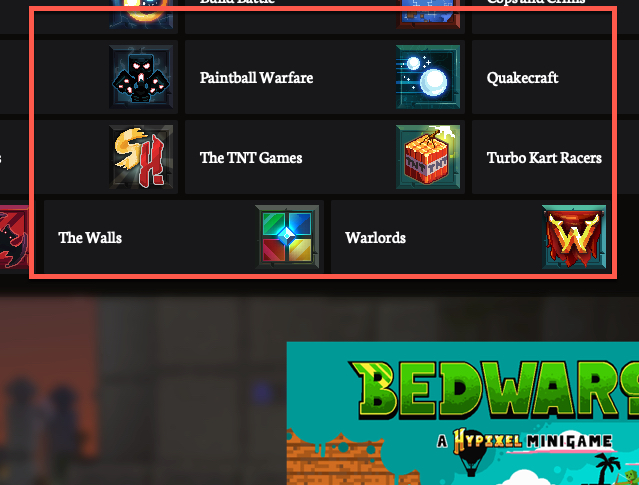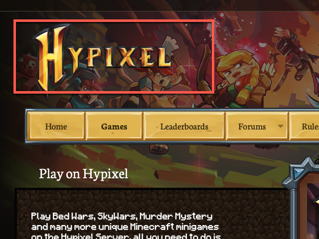 외국에서 제공하는 서비스로 인하여 하이픽셀(Hypixel) 홈페이지를 방문하면 영어로만 메뉴가 구성되어 있습니다