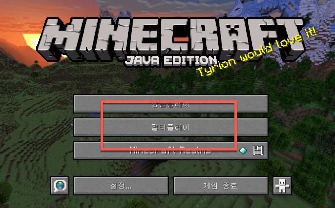 홈페이지에서 회원 가입과는 별도로 하이픽셀 서버에서 마인크래프트(Minecraft)의 미니 게임에 참여하기 위해서는 컴퓨터에 설치되어 있는 마크 게임 프로그램을 실행 후 <멀티플레이> 를 마우스로 클릭 이동을 합니다