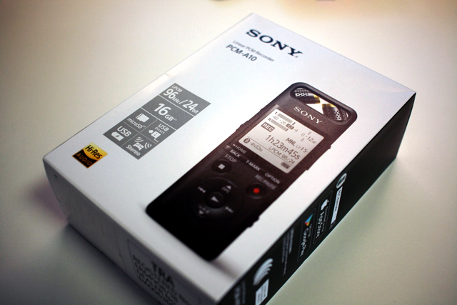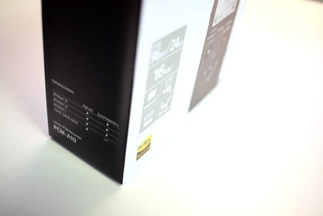 소니 PCM-A10 의 기본 포장 박스는 실 레코더의 실물 크기와 동일한 제품 사진과 함께
