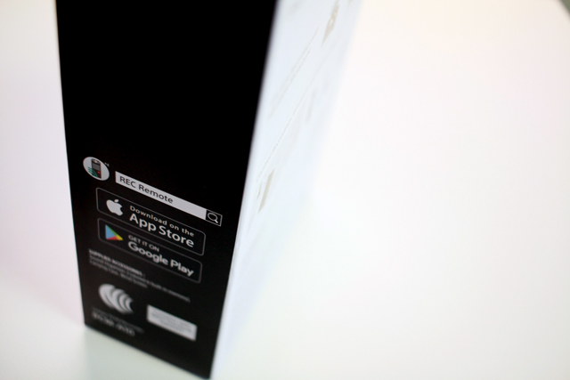 우측 측면에는 애플 아이폰과 구글 안드로이드계열 스마트폰과 태블릿에 설치할 수 있는 앱 이름인 <REC Remote> 으로 안내 그림이 있습니다