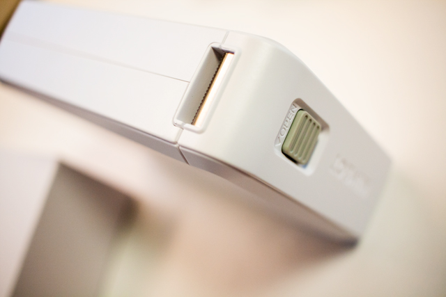 프린터 라벨 용지는 상단에 있는 <OPEN> 버튼을 누르면 라벨용지를 끼워 넣을 수 있도록 내부가 오픈됩니다