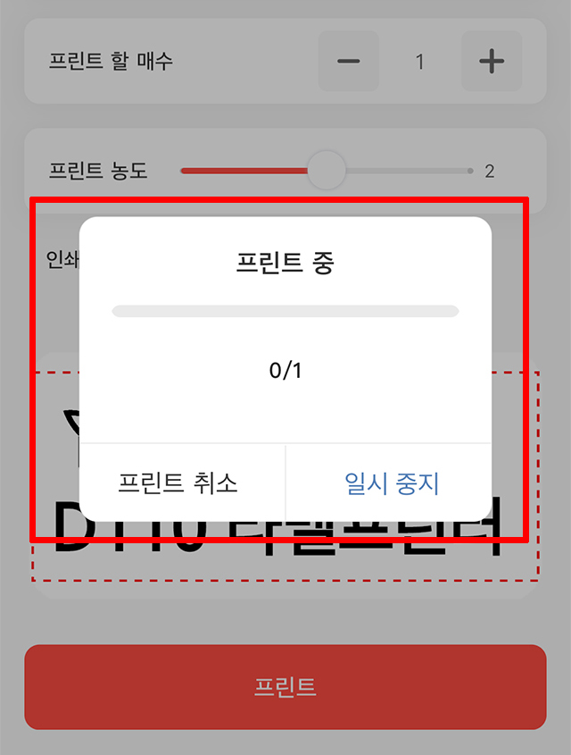 프린터 할 용지 디자인이 완료되면 동일한 디자인 라벨 수량과 프린터 인쇄될 결과물의 농도 값을 설정 후 <프린터> 버턴 터치 만으로 손쉽게 나만의 작은 라벨 접착용 프린터의 첫 번째 프린터 작업을 시작하게 됩니다