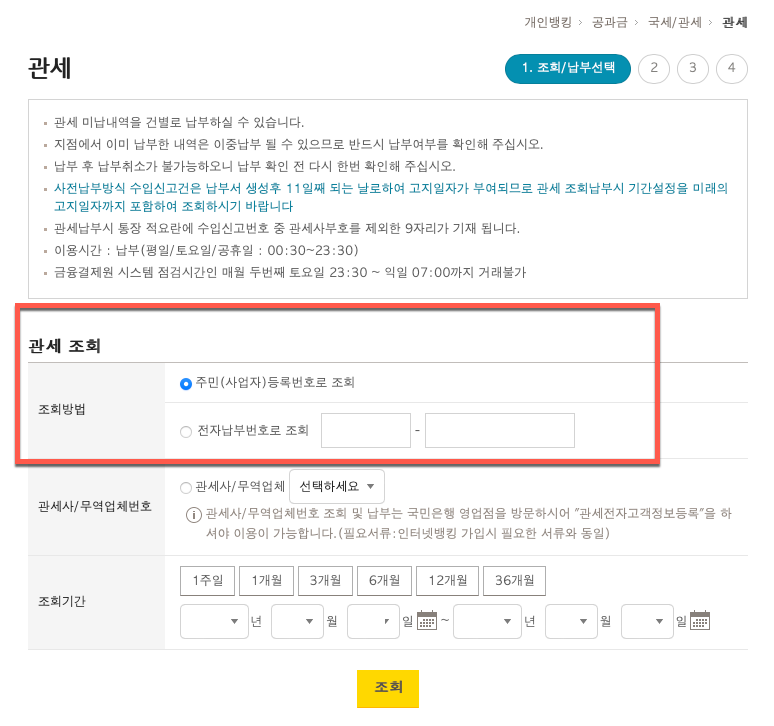 해외직구 관세&부가세 KB은행 전자납부번호 인터넷뱅킹 납부하는 방법