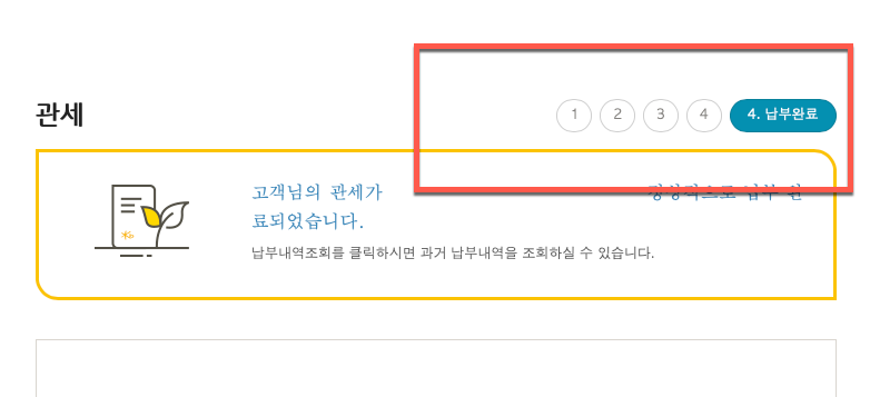 마지막 4번째 단계에서는 납부할 관 부가세를 이체 완료한 정보가 표시됩니다