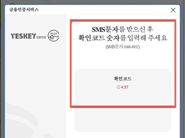 등록한 본인 소유의 휴대폰으로 전송된 확인코드 숫자를 입력 후