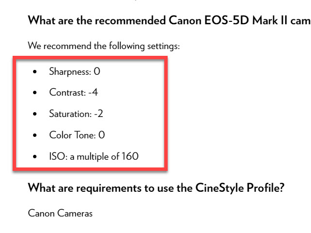 홈페이지에서도 Sharpness:0, Contrast: -4, Saturation: -2, Color Tone: 0, ISO: a multiple of 160 으로 세팅 정보 안내가 되어 있습니다