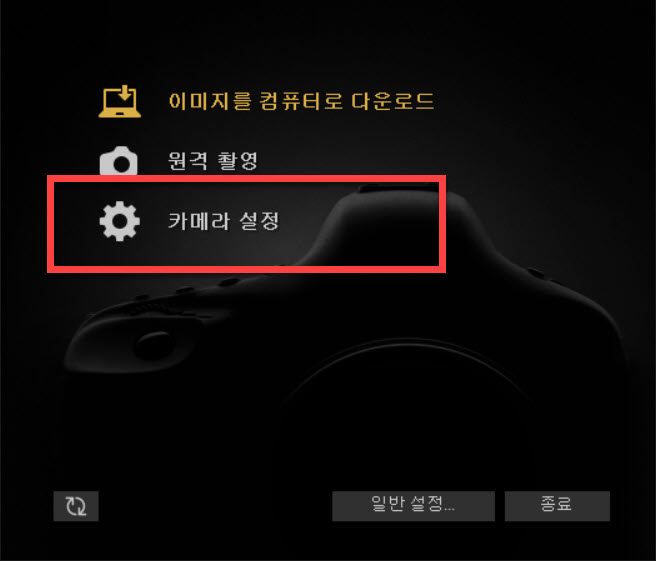 카메라와 PC 사이 연결이 정상적으로 잘 연결되었다면 <카메라 설정> 의 메뉴를 찾아 마우스로 클릭 선택합니다