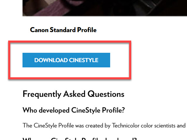설명 드린 홈페이지로 이동하셨다면 화면에 있는 <DOWNLOAD CINESTYLE> 의 파란색 버튼을 클릭하여 파일을 현재 사용하고 있는 내 컴퓨터의 다운로드 폴더로 받는 작업부터 진행해 주셔야 합니다