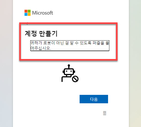계정 생성 작업을 사람이 아닌 컴퓨터 프로그램으로 시도하는지 점검하는 간단한 퍼즐 테스트까지 완료해 주시면 회원가입이 완료됩니다