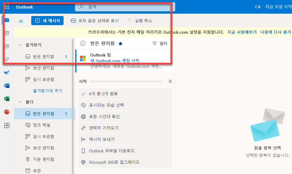 메일 관리 프로그램인 아웃룩(Outlook) 화면 구성도 비슷하다는 것 알 수 있습니다