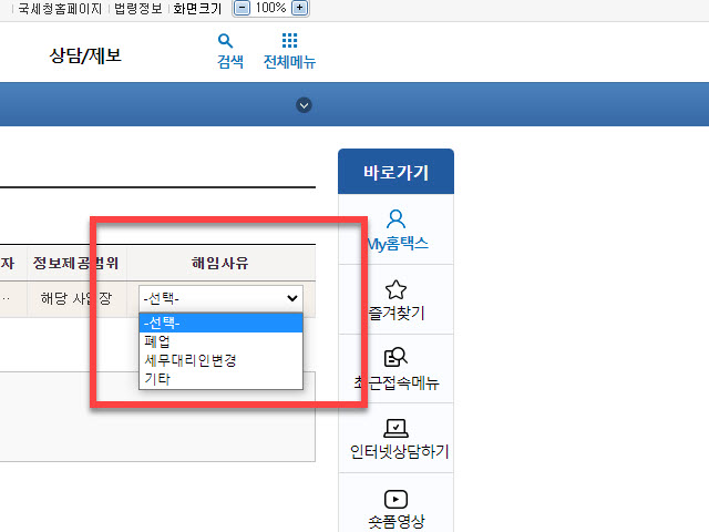 홈텍스에서 우리 세무사 사무실 정보 내역 찾기
