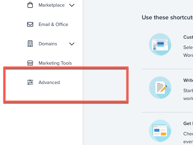 Bluehost 홈페이지 로그인을 한 다음 좌측에 있는 6개 메뉴 중에 가장 아래에 있는 <Advanced> 를 선택하면 cPanel 을 만날 수 있습니다