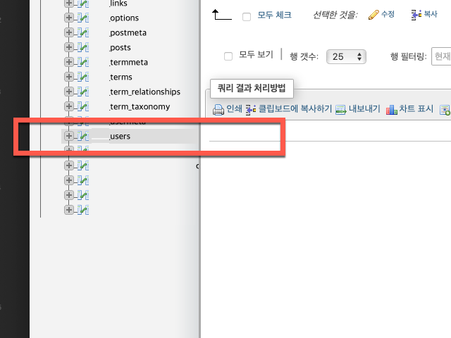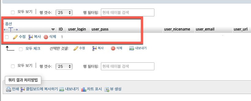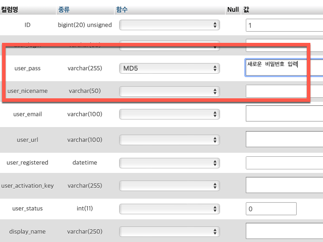phpMyAdmin 에서 워드프레스 비밀번호 변경하기