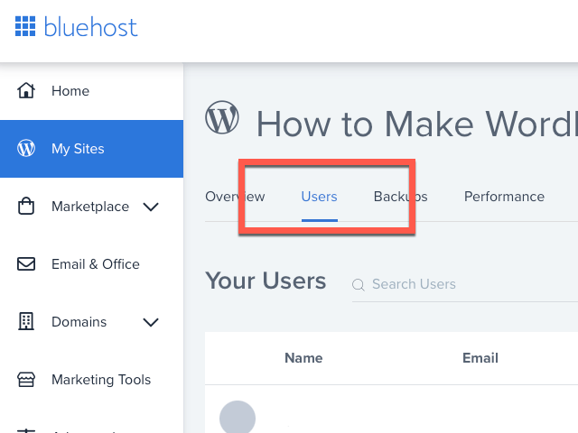 블루호스트가 아닌 다른 호스팅 업체를 이용하는 경우에는 워드프레스 관리자 페이지로 이동한 다음 좌측에 있는 메뉴 목록 중 <Users> 를 바로 클릭 이동하여