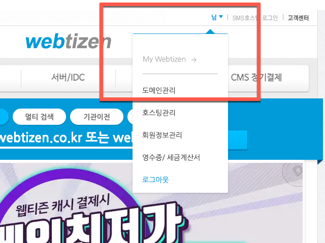웹티즌(webtizen) 등록된 도메인 사용기간 연장 2가지 방법