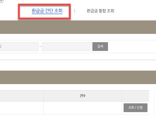 납부하였던 지방세 세금 중에 돌려받게 된 환급금 정보를 검색하면 해당 항목의 건수 표시와 함께 오른쪽 편에 조회 신청 버튼을 찾을 수 있습니다